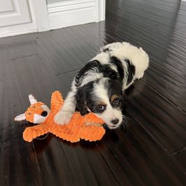 Mia is a female Cavapoo. Carefully selected as a great representative of her breed, Emily decided to make her part of their program. Emily has passed Good Dog’s screening process, which involved a review of their breeding practices, environment, and the mental and physical health of their dogs.