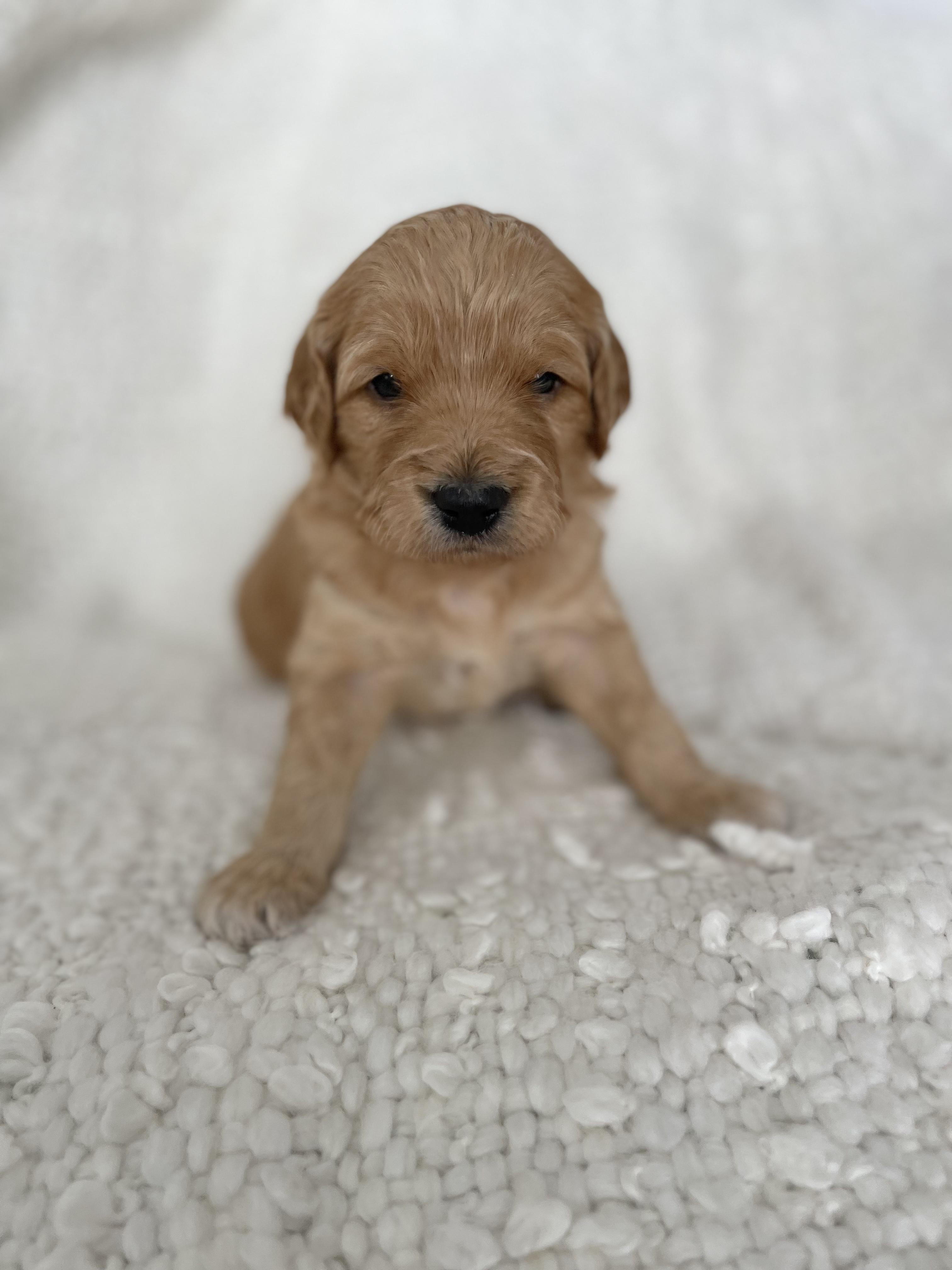 Georgia is a female Goldendoodle. Carefully selected as a great representative of her breed, Emily decided to make her part of their program. Emily has passed Good Dog’s screening process, which involved a review of their breeding practices, environment, and the mental and physical health of their dogs.