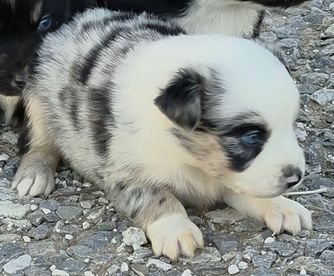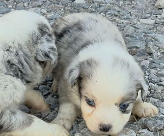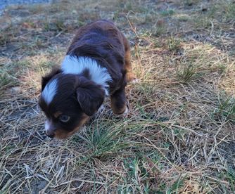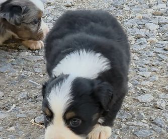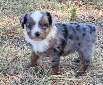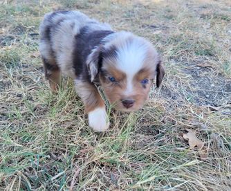 Miniature Australian Shepherd puppies include red & white, black & white, blue merle, black tri, red tri, and red merle. Toy Australian Shepherd puppies include black & white, red & white, black tri, blue merle, red merle, and red tri. Colors will vary depending on the parent dogs.