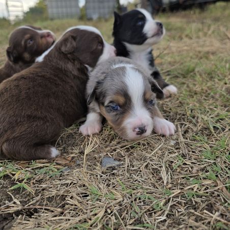 I'm Brandy D., the breeder behind Tin Roof Aussies located in Leonard, TX. We have culled and combed through a wide selection of dogs to find just the right fit for our program. Temperament is highest on our list and following that is conformation. We believe in giving you a friend that is happy, healthy, and will be a long term friend to your family. Whether you want a family friend or a show dog to compete with we have what is most desired in the aussie breed. We have added toys to our program. These guys are just a smaller version of our minis & standards and we love them!