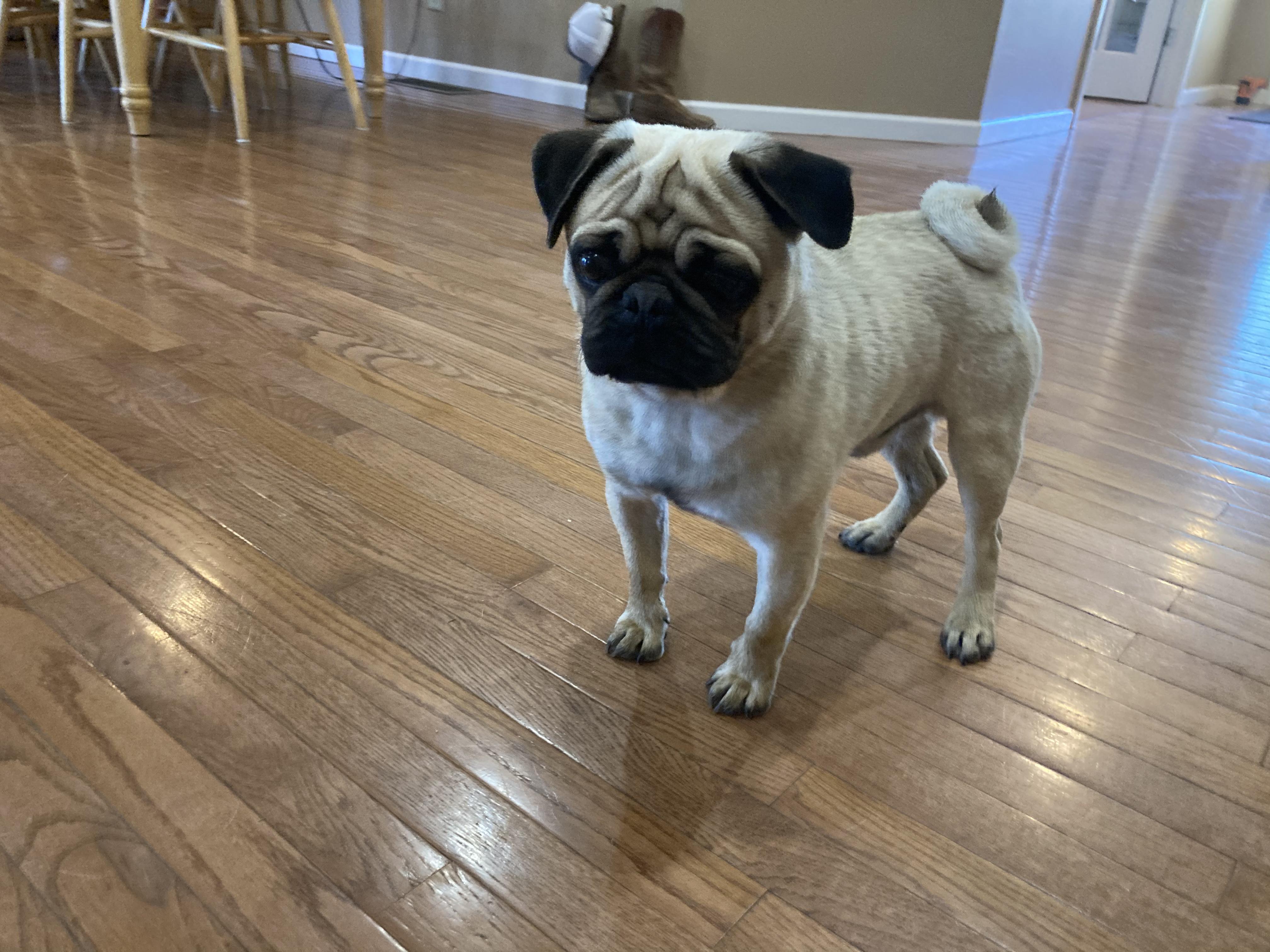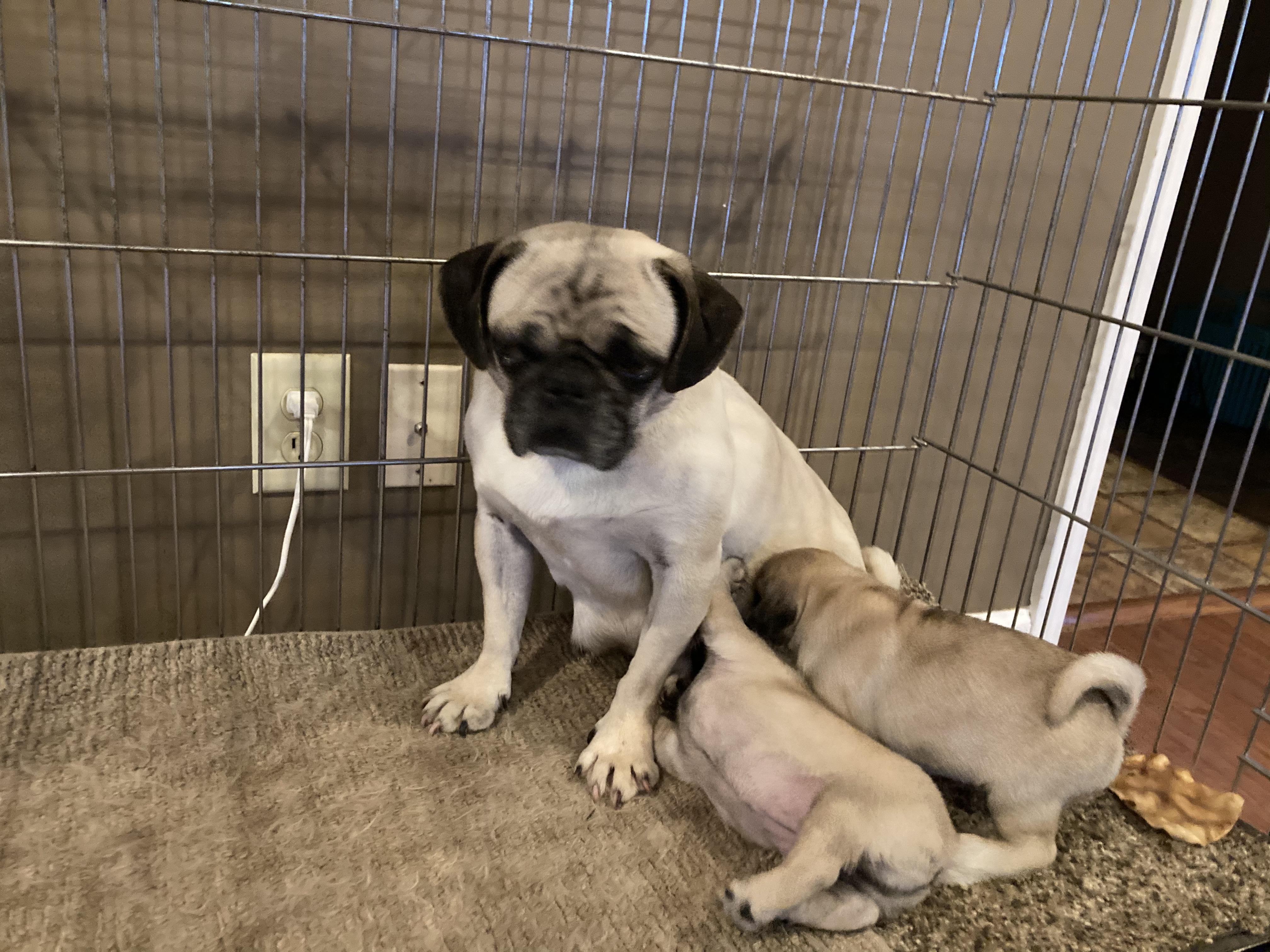 Dozer is a male Pug. Carefully selected as a great representative of his breed, Tina decided to make him part of their program. Tina has passed Good Dog’s screening process, which involved a review of their breeding practices, environment, and the mental and physical health of their dogs.
