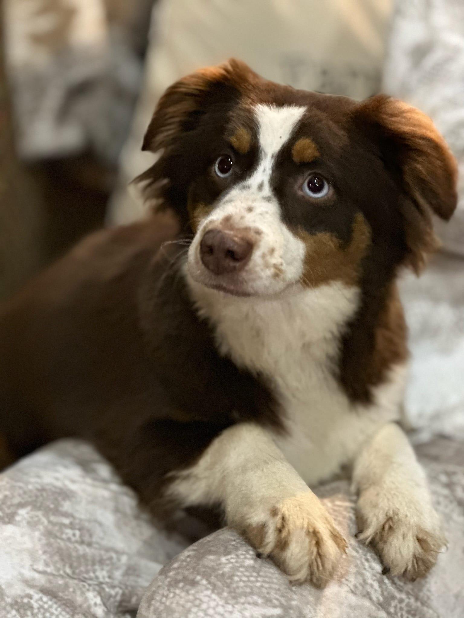 Our Miniature American Shepherd puppies include red tri-color, black tri, red merle, and blue merle. Miniature Australian Shepherd puppies include blue merle, black tri, red tri, and red merle. Colors will vary depending on the parent dogs.