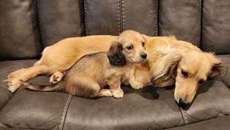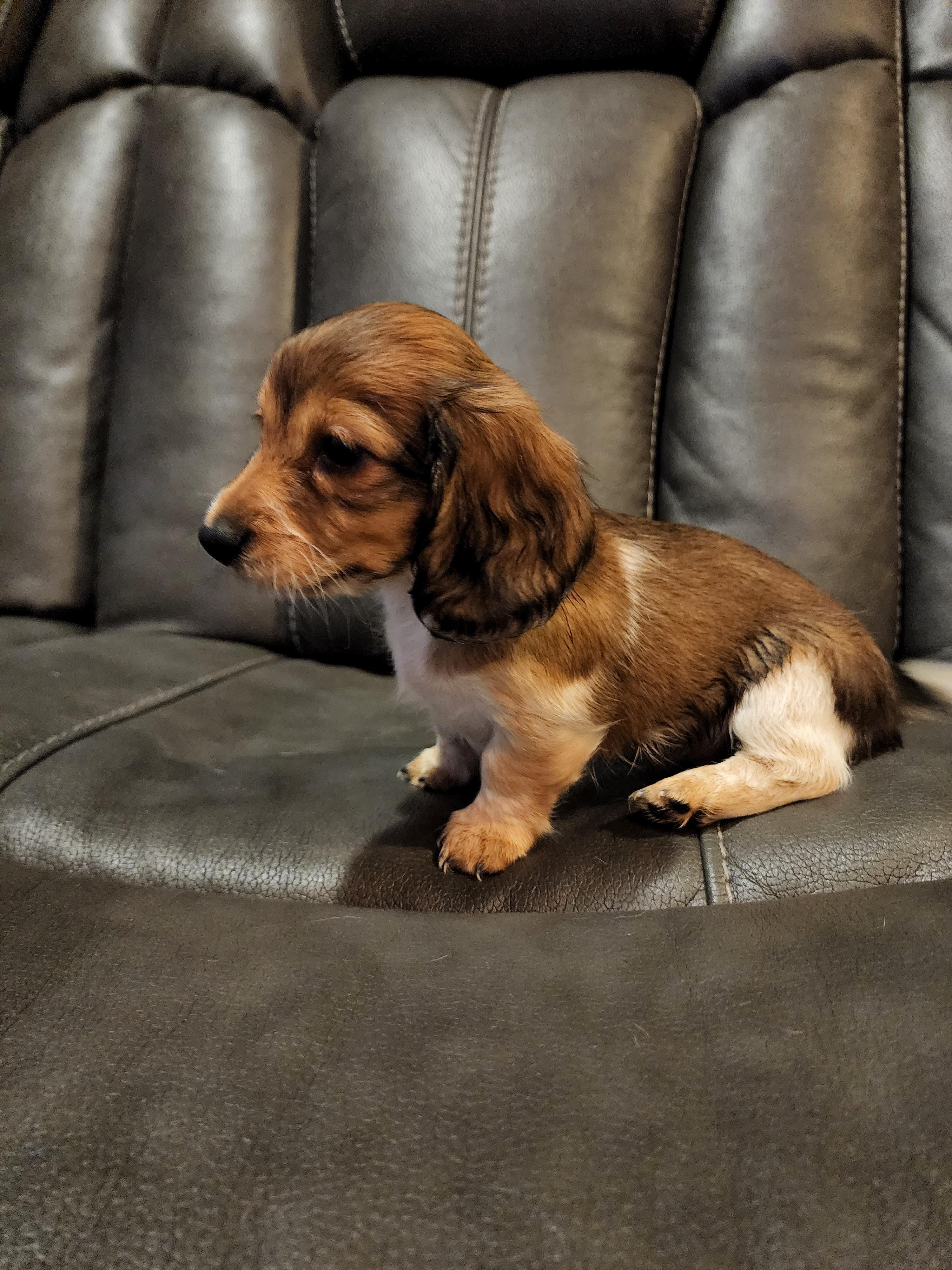 Our Dachshund puppies have longhaired coats. Coat types may vary depending on the parent dogs.