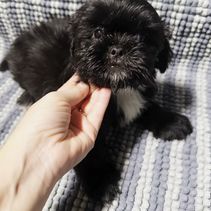Raven is an AKC Shih Tzu and very sweet. She loves everyone, she is trained, she plays with toys , she eats dry food, she is healthy , she is very smart and obedient , a great mother and she is also up to date with vaccines .
