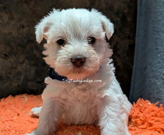 Our Yorkshire Terrier puppies include tan and white, chocolate, tan and white, liver, gold, chocolate and tan, parti, black and tan, tan, blue and gold, and black and gold. Miniature Schnauzer puppies include wheaten, white, parti, and liver. Colors will vary depending on the parent dogs.