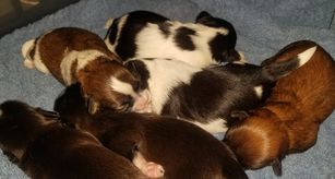 All of my dogs and puppies are raised in my home as part of my family. They are each well socialized from birth by interacting with me and my grandkids. They have a large, safe area in the yard where they get to run and explore. Some love to play in the pool while others prefer to sunbathe and work on their tans. When in the house, they are free to run the recreation room. In the evenings they sleep in their puppy playpens or take turns sleeping with me. By the time they go to their new homes, they are already socialized, spoiled, and ready for their new owners.