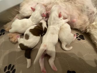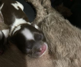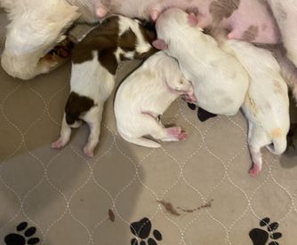 Our puppies include liver, blue, white, liver and white, gold and white, and black and white. Colors will vary depending on the parent dogs.