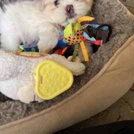 Francine was amazing! She stayed in touch and kept us updated all along the way. My dog is just the best! The complete package, fun, lovable, bundle of joy, healthy, from a good bloodline, akc registered, has his vaccinations, paper potty trained.... but already goes outside! Couldn't ask for more. Francine is a wonderful person and wonderful to work with. Bless her.