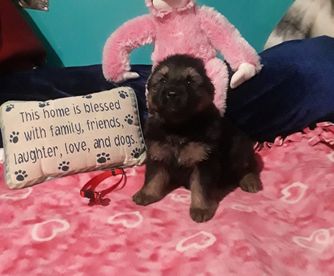 Koda is a awesome boy, with his long black coat & his loving personality. Koda loves to play ball and he likes his Lovins. He has a super personality, he loves all the dogs & loves to run & play with the ball. Koda loves to come into the house to visit, Koda is 28 inch's tall. Parents come from Siberia & has show lines in his pedigree.