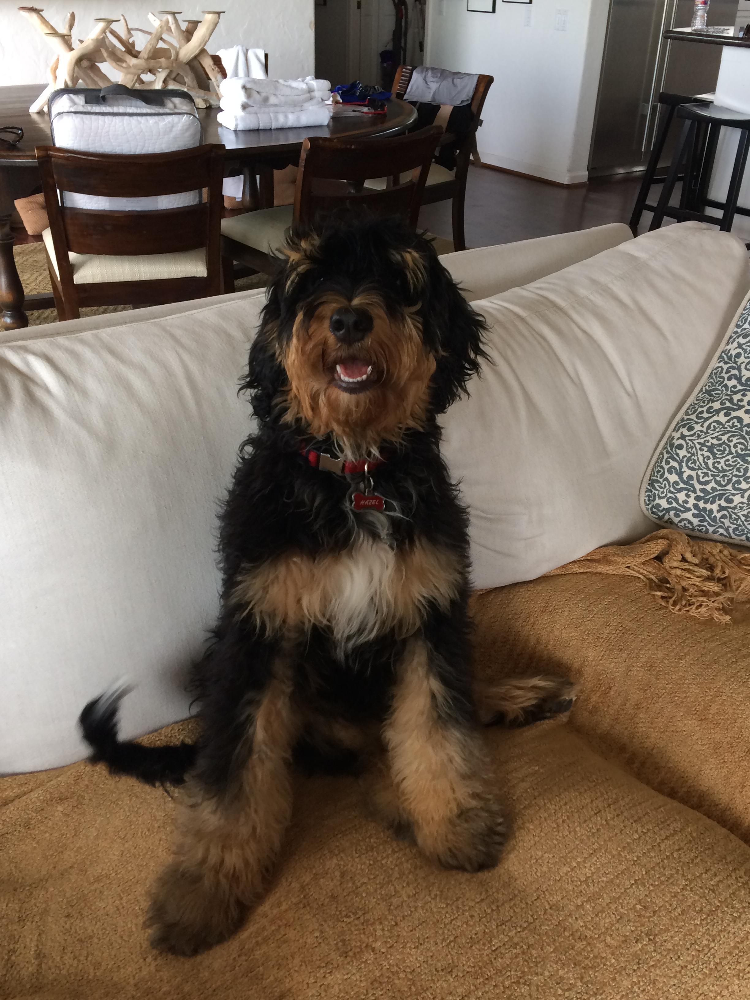 Hazel is a female Bernedoodle. Carefully selected as a great representative of her breed, Tom decided to make her part of their program. Tom has passed Good Dog’s screening process, which involved a review of their breeding practices, environment, and the mental and physical health of their dogs.