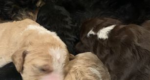 My wife and I grew up with dogs. We decided to have a litter with our F1's and had a lot of fun sharing this breed with other dog lovers. We have since bred our female with a standard poodle for F1b pups and we are on our second litter with that male.