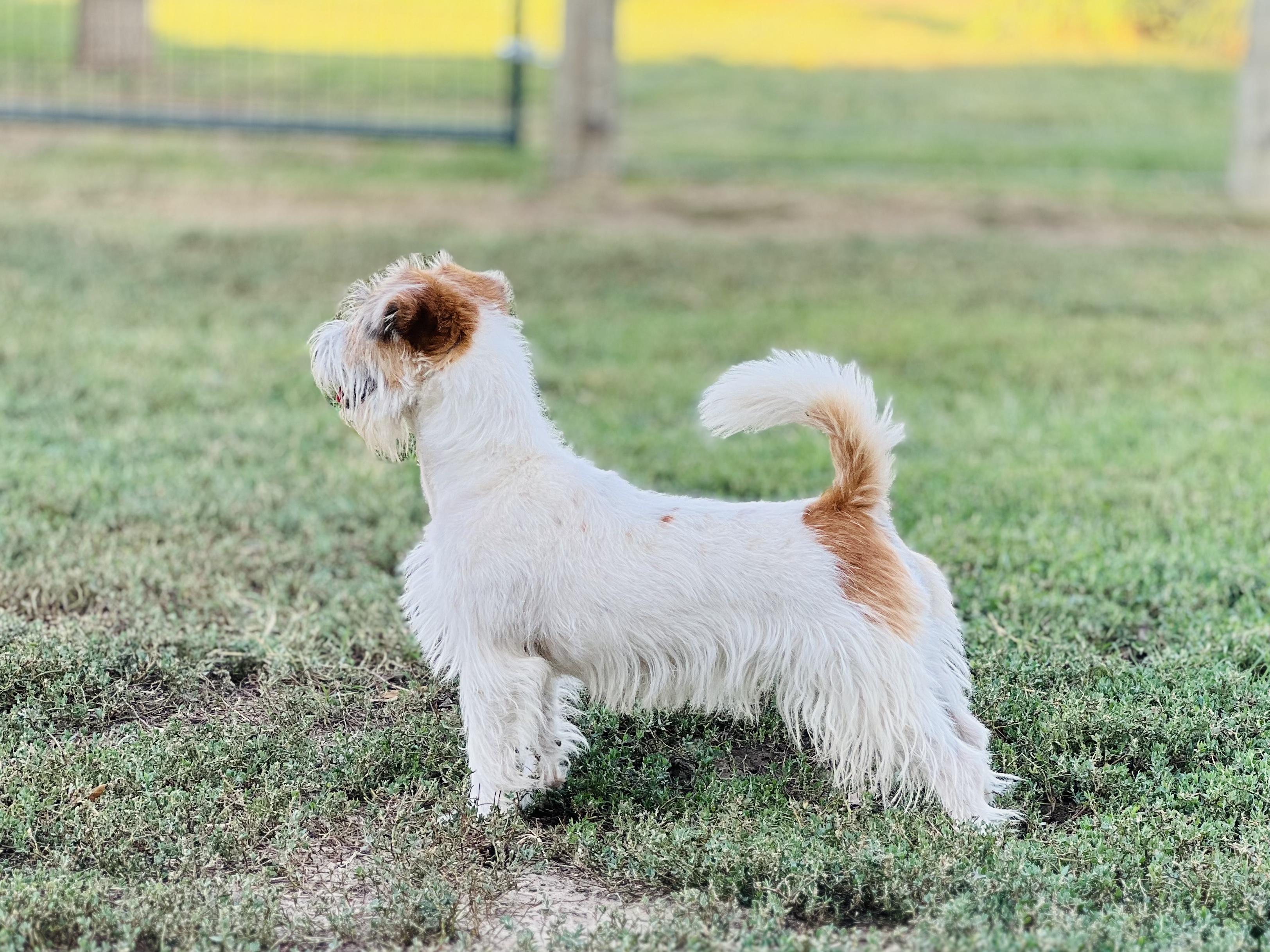 After the heartbreaking loss of our beloved Jack Russell Terrier, my wife and I knew we couldn’t imagine life without another JRT. We started looking locally in San Francisco, CA, but struggled to find reputable breeders with available puppies. That’s when we turned to Good Dog, where we were fortunate enough to discover Kellie’s page. From her Tracker x Tilly litter born on June 7th, we chose a beautiful little boy. We made our deposit on June 24th and eagerly waited the weeks until our pup was ready to come home. During that time, Kellie was amazing—she regularly sent us pictures and videos, keeping us updated on his growth and personality. When the day finally came, I flew to Fort Worth, TX to meet Kellie and pick up our pup. Kellie and her family clearly put so much care and love into breeding healthy, wonderful puppies, and we couldn’t be more grateful. Pancho has been an absolute joy, and my wife and I are completely in love with him. We highly recommend Kellie to anyone looking for a well-bred Jack Russell Terrier!