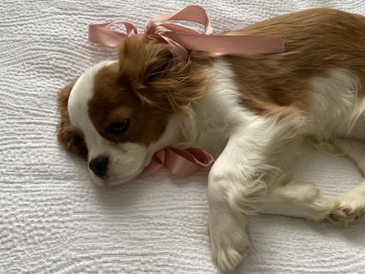 Our puppies are blenheim. Colors will vary depending on the parent dogs.