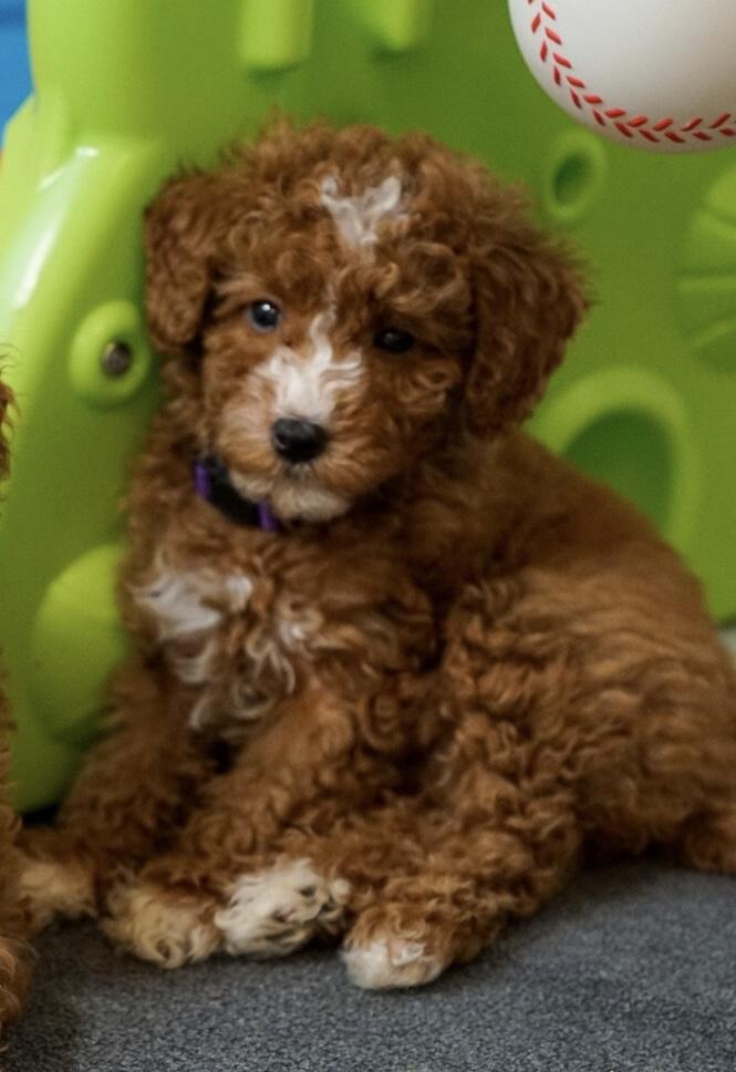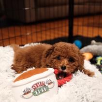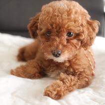 Cinnabar is a 6 lb beautiful red toy poodle. She is out of AKC champion lines. Cinnabar is affectionate, human focused with a sweet disposition.