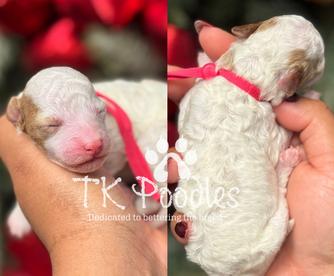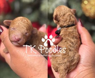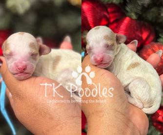 We had a wonderful experience with TK poodles! She cares so much about each and every one of her dogs and went that extra mile to make sure that we found the perfect fit for our family. She made the entire process so easy and even sent us home with a goody bag to help us make our puppy feel at home! She takes so much pride in her dogs and in the breed. It shows with how GORGEOUS, healthy and happy her dogs are! We named our sweet mini Fable and absolutely adore him. He lights up our whole family and has brought us so much joy. He’s incredibly smart and sweet. I can’t thank her enough honestly. I’ll likely reach out again if we decided to get another puppy. I highly recommend TK poodles to anyone looking to adopt.