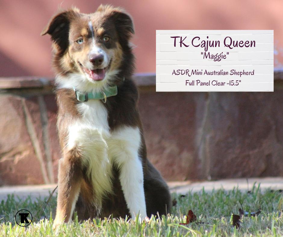 She is a keeper girl out of our retired Cooper Creek Rory Cajun Shadow at TK and Blue Star's Singin Reba at SLA (Sassy Lil Aussies) She will join our lineup of dams Summer of 2023.