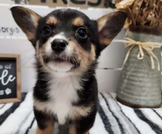 Our American Corgi puppies include fawn merle, fawn and white, black and white, black and tan, and blue merle and white. Colors will vary depending on the parent dogs.