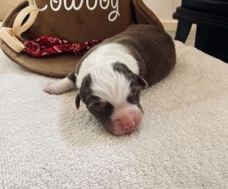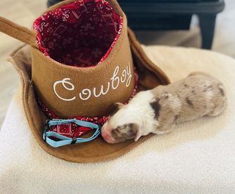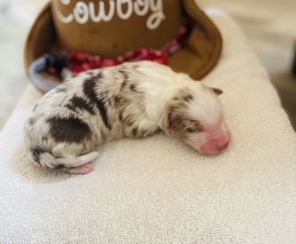 Our puppies include black, red merle, blue merle, and red. Colors will vary depending on the parent dogs.