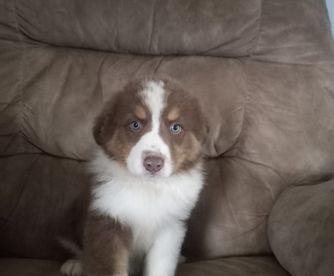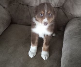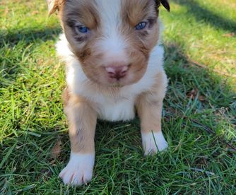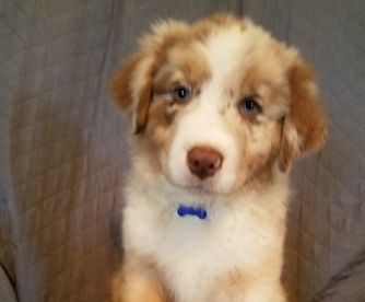 Our puppies are red merle. Colors will vary depending on the parent dogs.