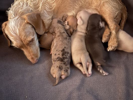 Our puppies include wirehaired and smooth coat varieties. Coat types may vary depending on the parent dogs.