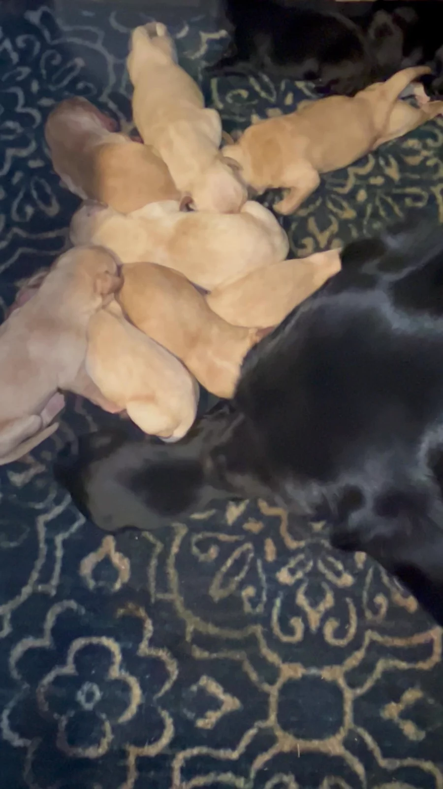 🫢🐾🐾🐾🐾🐾🐾 Fancy had 11 pups a couple of days ago. Everyone is doing great. Fancy is one proud, but tired mama. The yellow is strong in this litter! 5 💛 males, 3 💛 females and 3 🖤 females. 💥HRCH Tlc’s Fancy Don't Let Me Down SH x 💥GRHRCH Tarheel's Drake Haulin Tonka MH