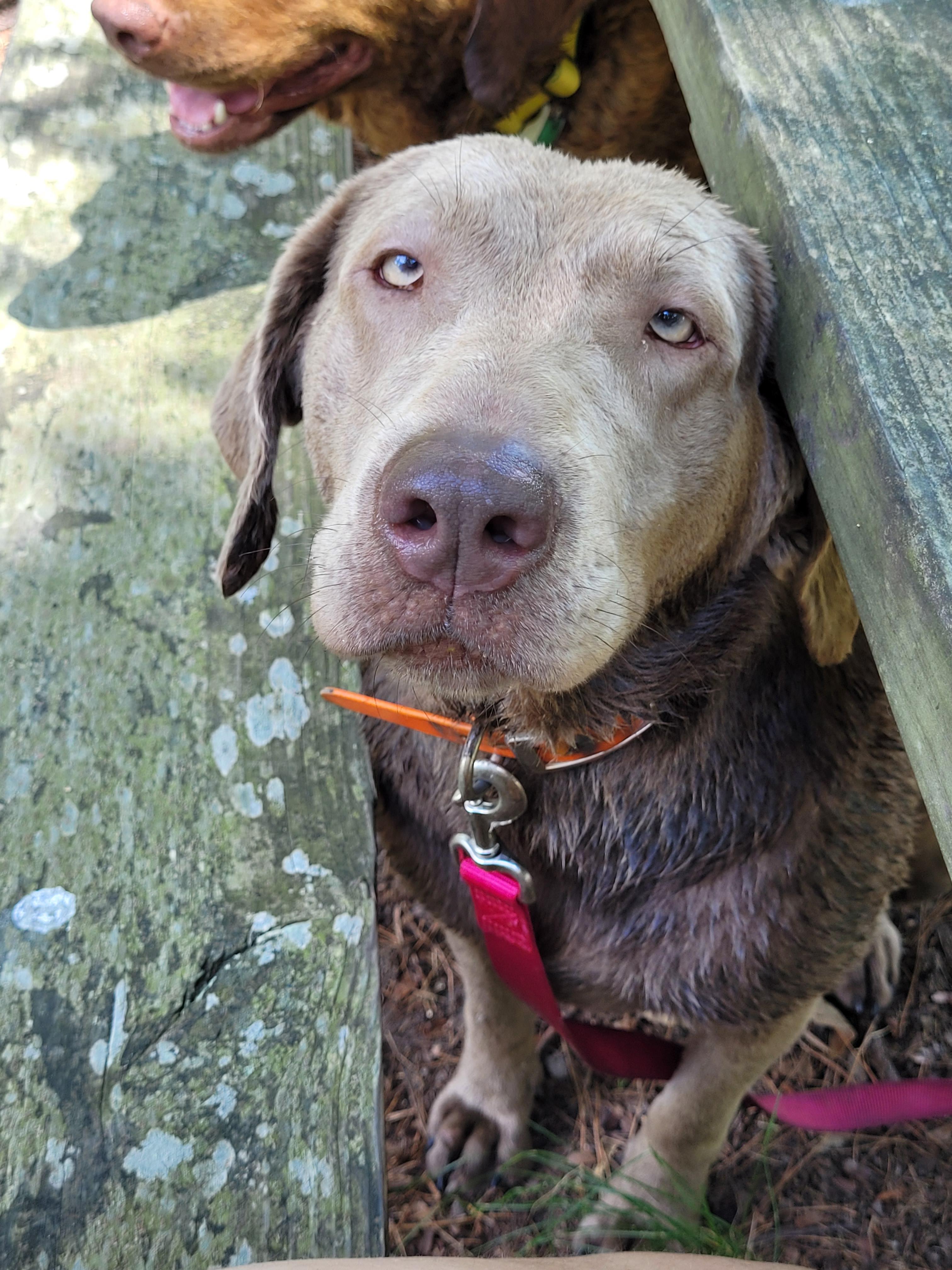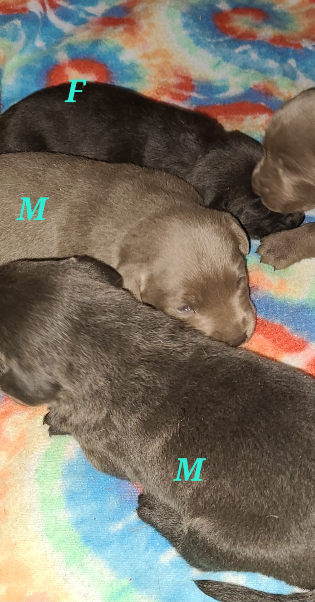 We bought our first dilute factored Labrador in Feb. of 2018. (She was 4) We loved her temperament, & structure. We bred her to Ranger after doing her health testing. We have kept back 3 of her daughters to continue breeding her lines!