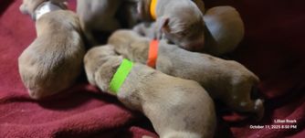 We strive for quality, thick coats on all of our dilutes. We have never produced a "hairless" dilute dog. Our dogs do not suffer from CDA. We look at pedigrees, structure & health of each dog before pairing them together.