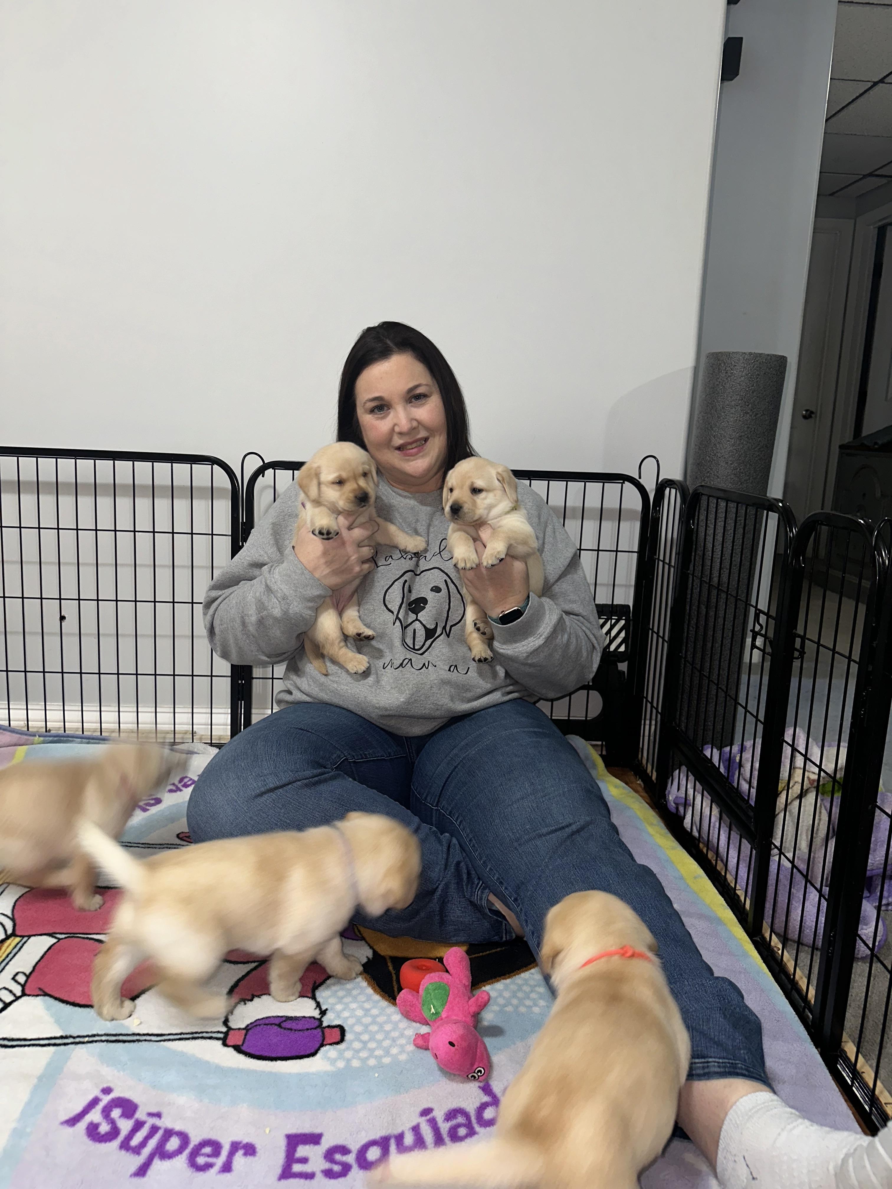 We raise our labs in our home. We pride ourselves on making sure that by the time the puppies go home, they are socialized, starting potty and crate training, and used to all different elements. All our breeding dogs are health-checked to ensure we are breeding dogs of a good standard.