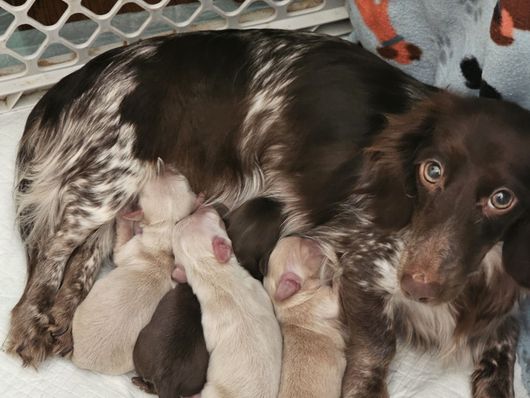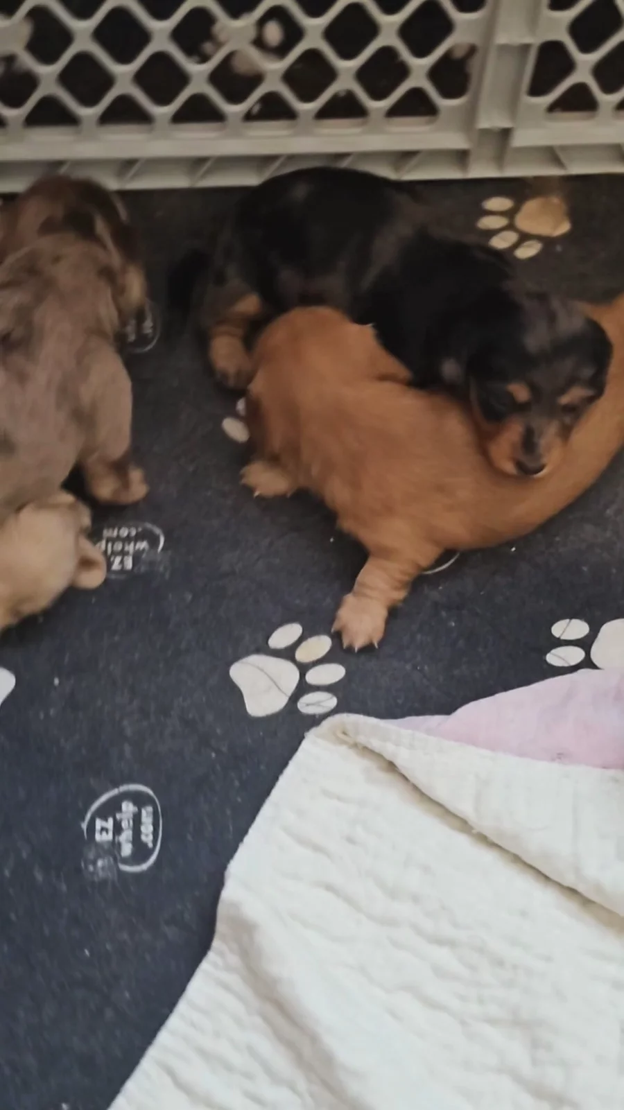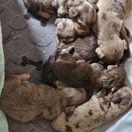 Dachshund puppies include smooth and longhaired coat varieties. Coat types may vary depending on the parent dogs.