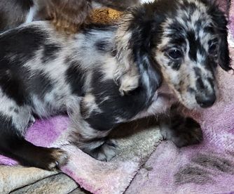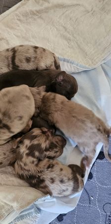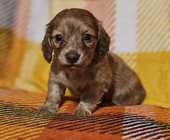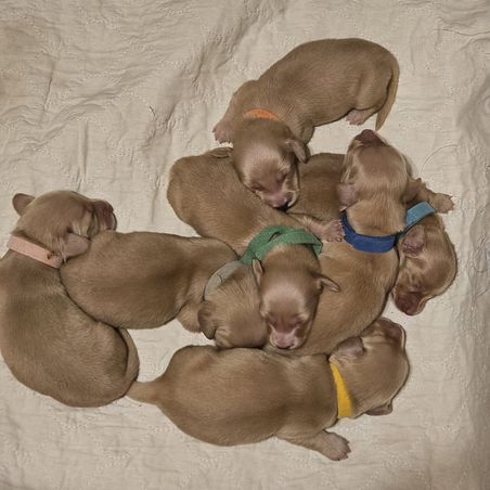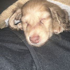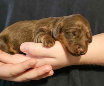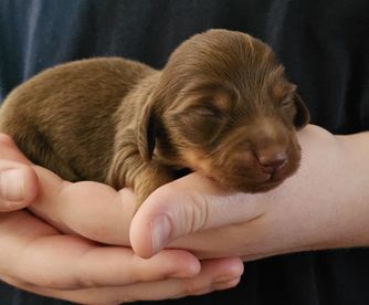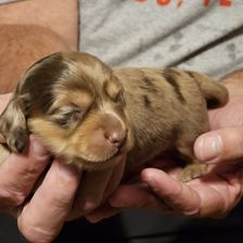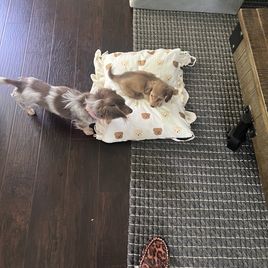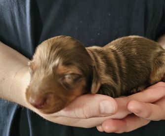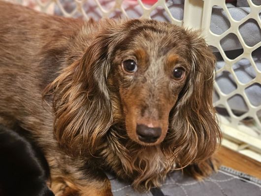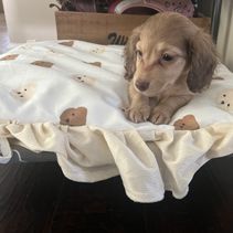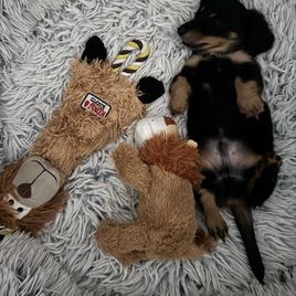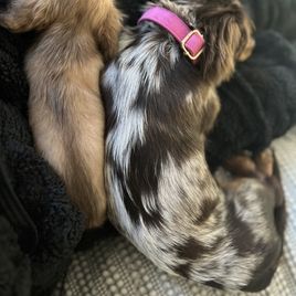 The process of getting my mini dachshund from Joni was amazing—from the first conversation to the last, she was incredibly helpful and kept me updated with photos along the way! Max is exactly the companion Blaze needed. They love to play tug of war together and have become the best of friends. Max is also a great passenger, he loves car rides and settles right in. I'm so grateful for the experience!