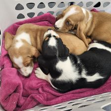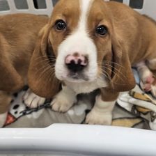 Our Basset Hound puppies include red and white, mahogany and white, and black brown and white. Dachshund puppies include piebald, cream, red, black, chocolate, brindle, blue and tan, chocolate and tan, chocolate and cream, black and tan, black and cream, and dapple. Colors will vary depending on the parent dogs.