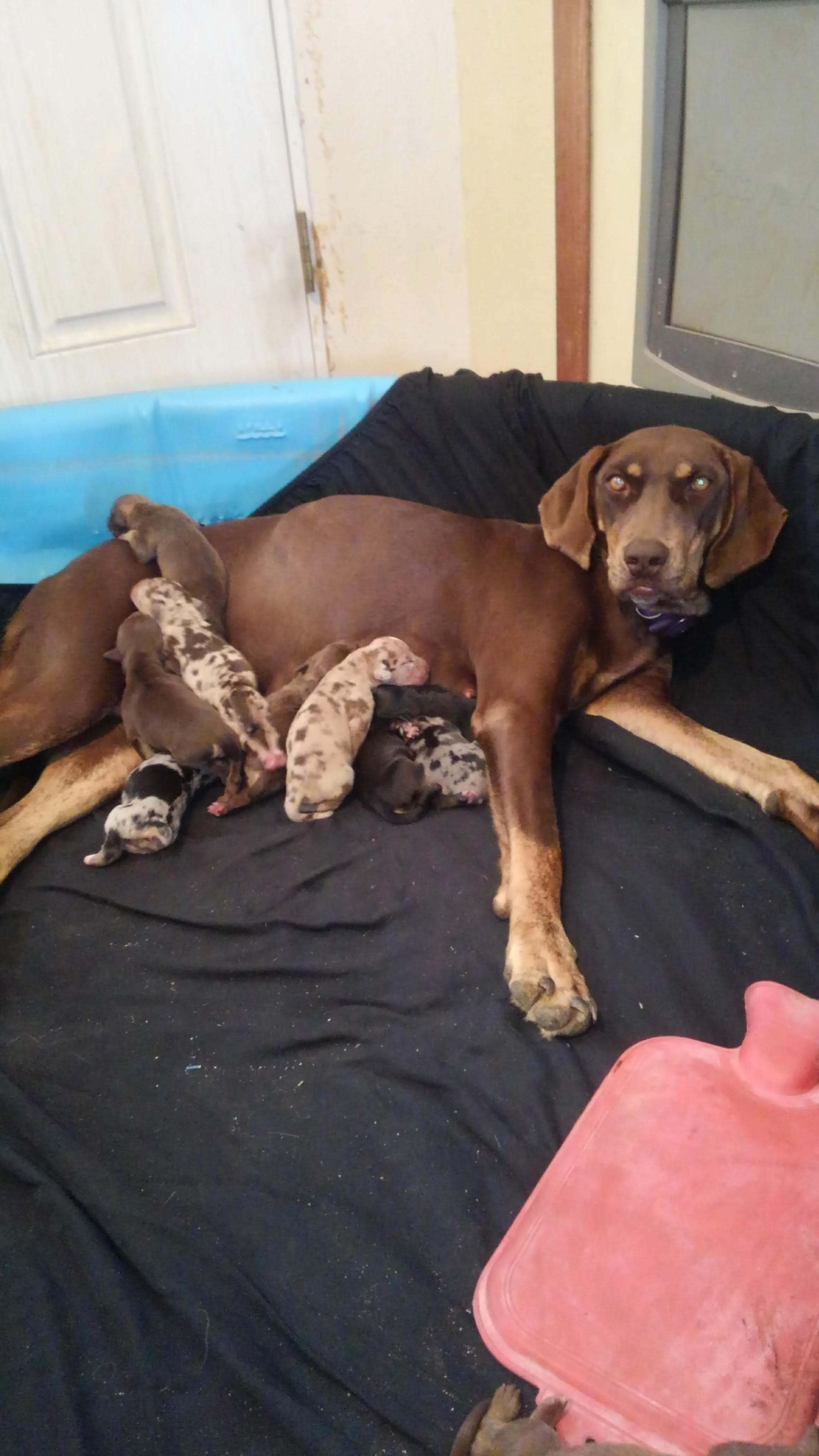 A couple of my friends are reputable Catahoula breeders, so I had been invited to see the new, adorable puppies in the past. The year my two Catahoula Leopard puppies were born, both choose me to play with every time I would visit. I fell in love with them and brought them home. The start of my breeding program came shortly after! It is an honor to represent this breed and create opportunities for others to experience the same.