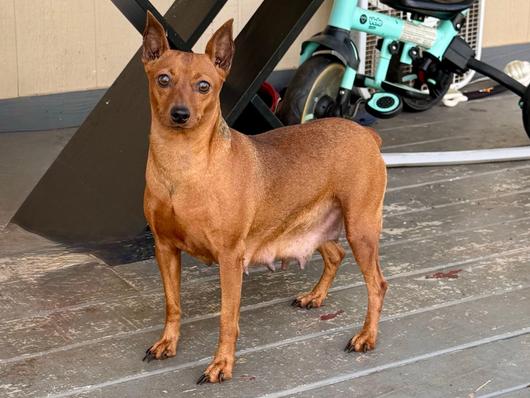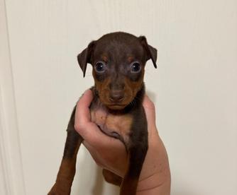 Our Cavalier King Charles Spaniel puppies include blenheim, ruby, and tri-color. Miniature Pinscher puppies include fawn (isabella) and tan, red, chocolate and tan, and black and rust. Colors will vary depending on the parent dogs.