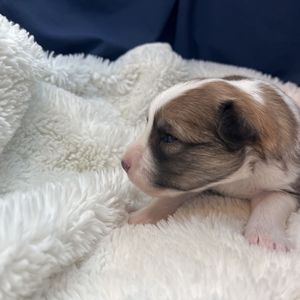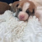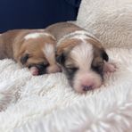 Our puppies include red and white and chocolate and white. Colors will vary depending on the parent dogs.