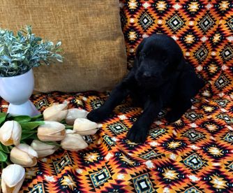 Our puppies are black. Colors will vary depending on the parent dogs.