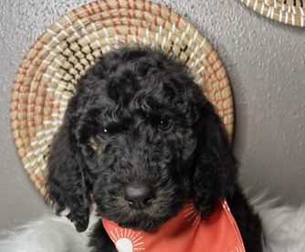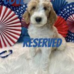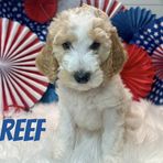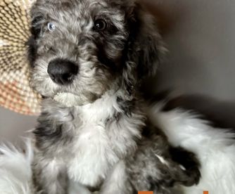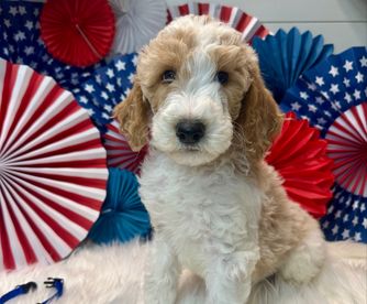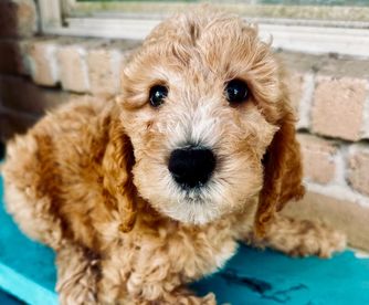 Our Goldendoodle puppies include apricot, red, black, merle, and parti. Aussiedoodle puppies include apricot, blue merle, and black phantom. Colors will vary depending on the parent dogs.