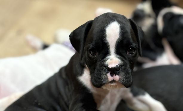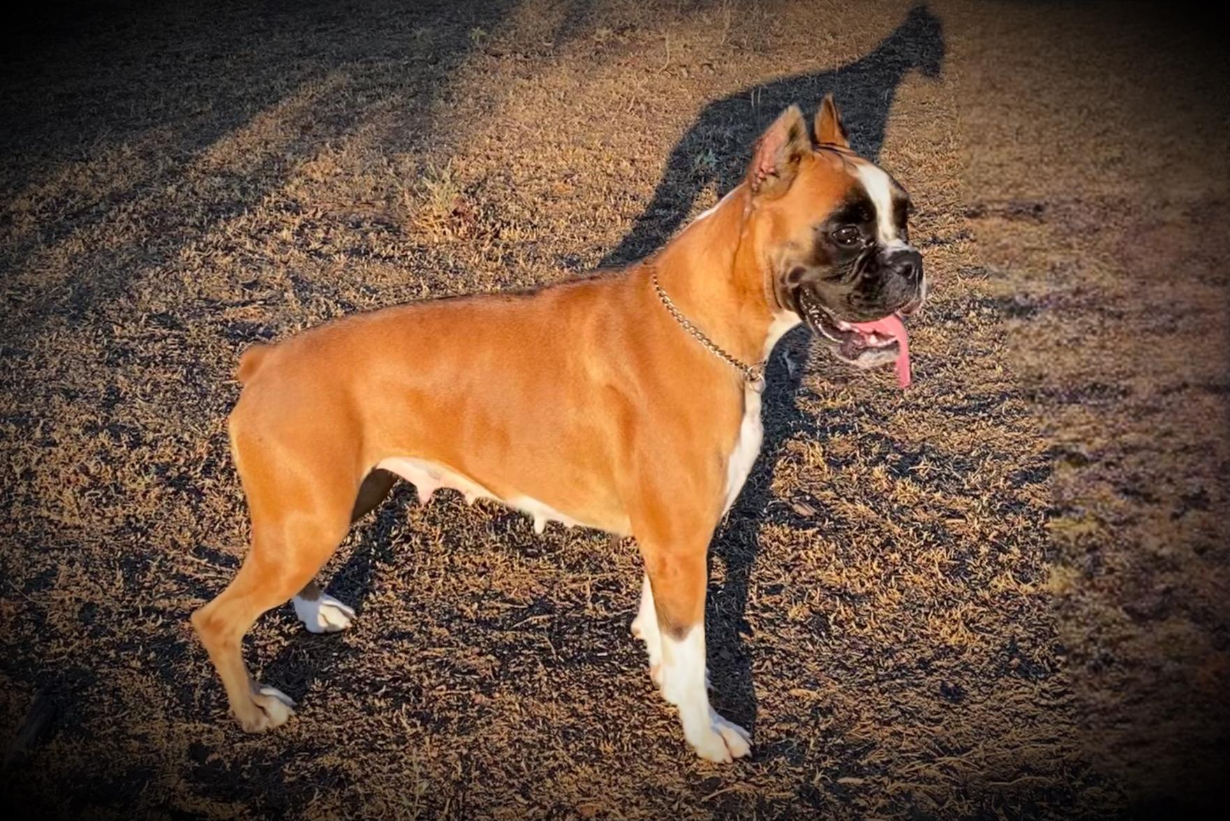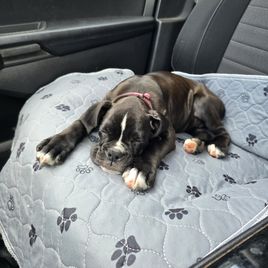 Sherri was absolutely amazing to work with. She kept us updated daily with pictures of our darling Pimples. I would definitely recommend anyone who is looking for a boxer to check Sherri out. Our Pimples is a sassy, energetic, feisty little girl and will soon be running the house. She just absolutely amazing and we truly adore her.