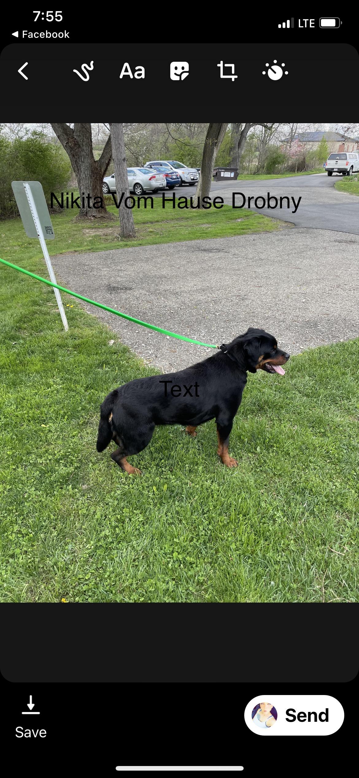 Nikita is a female Rottweiler. Carefully selected as a great representative of her breed, Tom decided to make her part of their program. Tom has passed Good Dog’s screening process, which involved a review of their breeding practices, environment, and the mental and physical health of their dogs.