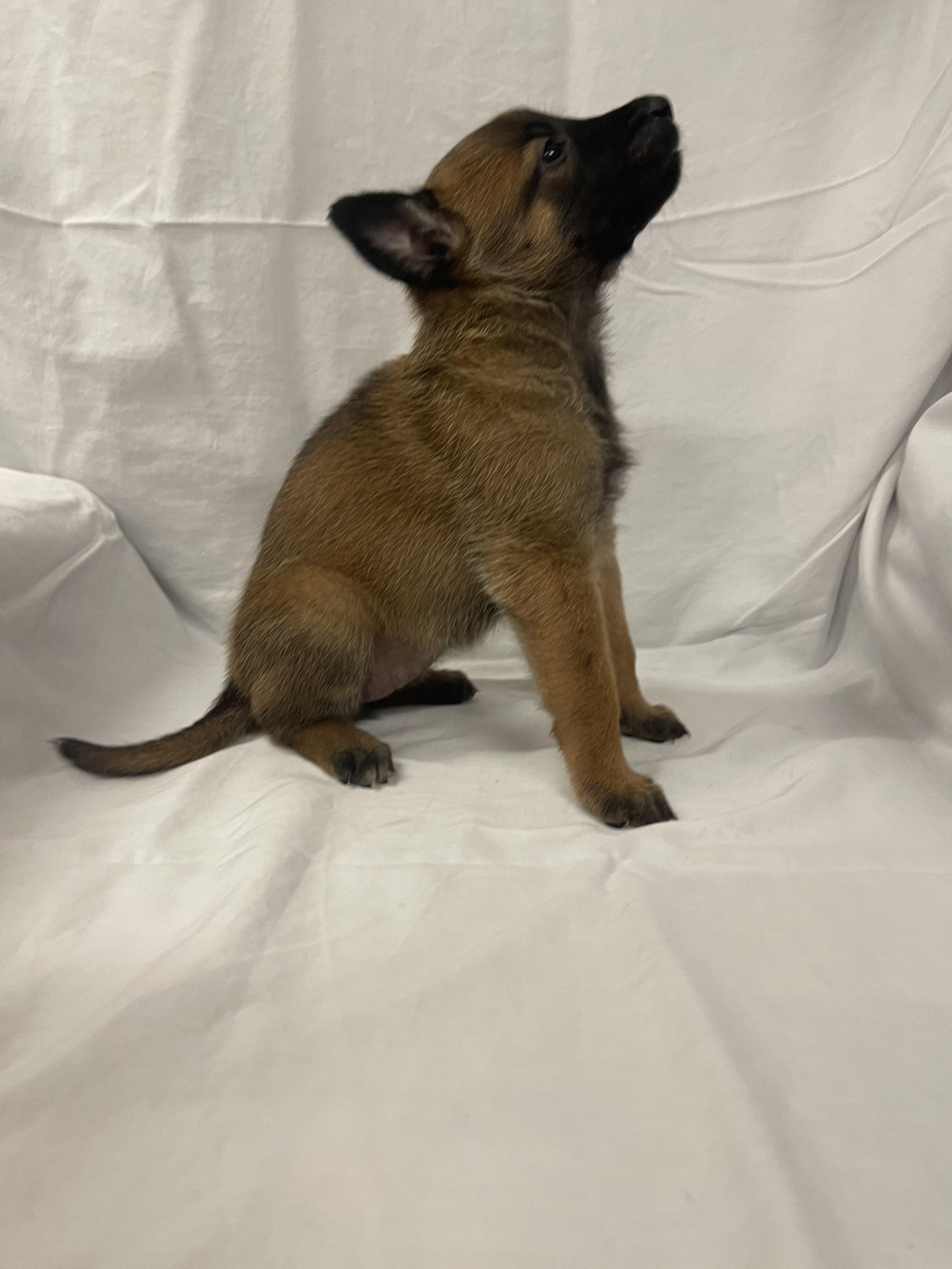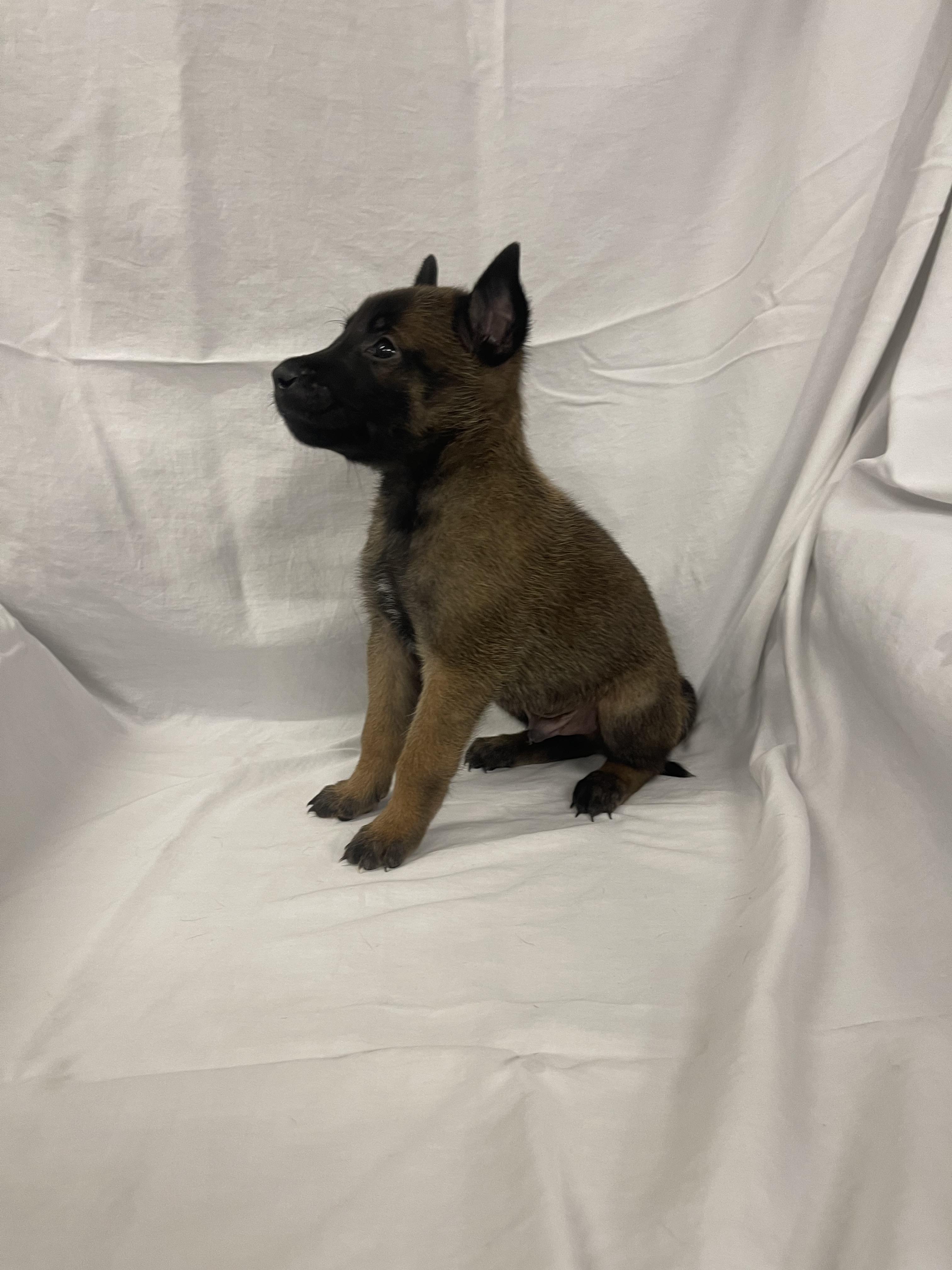 He has a high play toy & food drive and loves people and is highly socialized however remains a home protector as does most all Malinois.