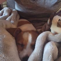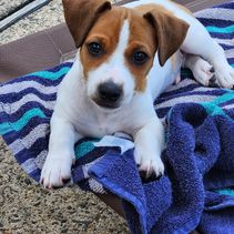 The queen of car rides and getting unlimited belly rubs. Walking pretty well on a leash so far. Learning sit and touch and getting better at potty training. Still looking for a home but im not afraid to keep her shes that sweet.