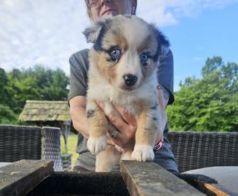 Our Miniature American Shepherd puppies include red & white, red tri-color, black & white, black tri, black, red merle, blue merle, and red. Colors will vary depending on the parent dogs.