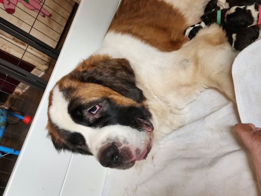 Mavis is a female Saint Bernard. Carefully selected as a great representative of her breed, Tonya decided to make her part of their program. Tonya has passed Good Dog’s screening process, which involved a review of their breeding practices, environment, and the mental and physical health of their dogs.