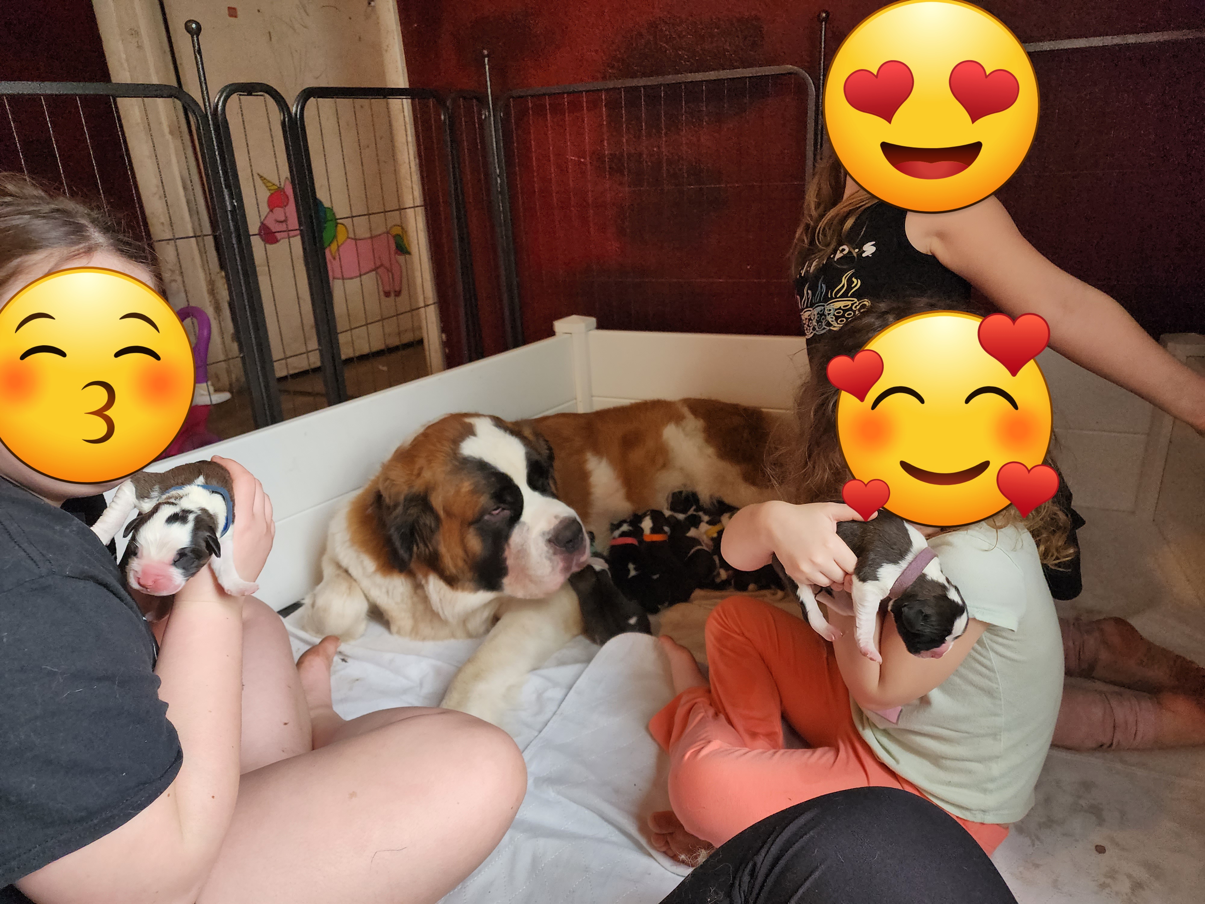 I'm Tonya T., the breeder behind Tonya Tate's Saint Bernards located in Lebanon, OR. We are pet owners first and foremost. All of our puppies are raised as members of our family until they’re ready to join yours. We raise our dogs in our home right alongside our family. We love being able to match our puppies with families that are the perfect fit for their personalities.