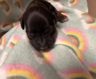Jenny is a female Dachshund. Carefully selected as a great representative of her breed, Tonya decided to make her part of their program. Tonya has passed Good Dog’s screening process, which involved a review of their breeding practices, environment, and the mental and physical health of their dogs.