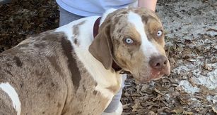 Calypso is a female Catahoula Leopard Dog. Carefully selected as a great representative of her breed, Amy decided to make her part of their program. Amy has passed Good Dog’s screening process, which involved a review of their breeding practices, environment, and the mental and physical health of their dogs.