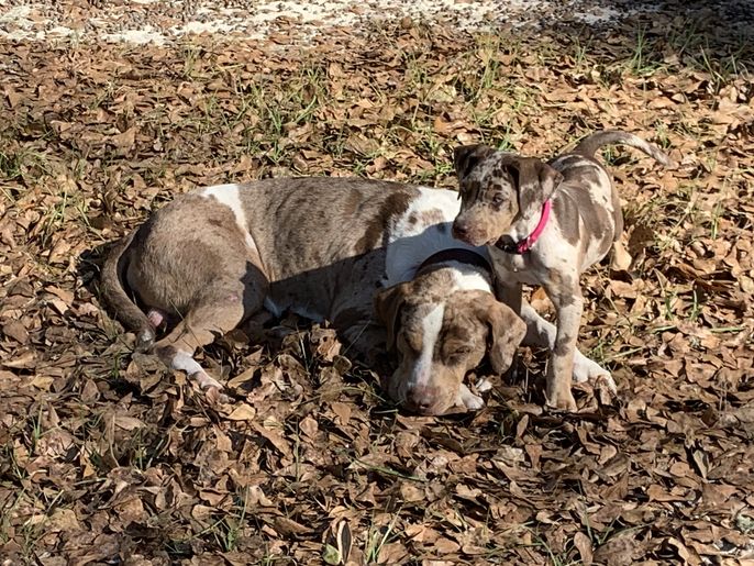 Boudreaux is a male Catahoula Leopard Dog. Carefully selected as a great representative of his breed, Amy decided to make him part of their program. Amy has passed Good Dog’s screening process, which involved a review of their breeding practices, environment, and the mental and physical health of their dogs.