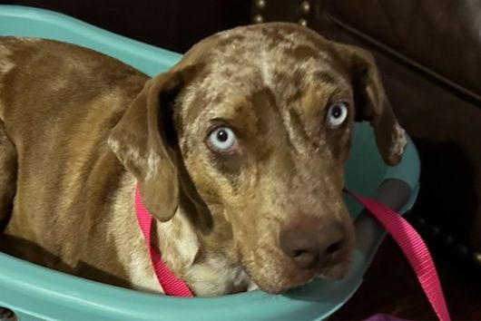 Nova is a female Catahoula Leopard Dog. Carefully selected as a great representative of her breed, Amy decided to make her part of their program. Amy has passed Good Dog’s screening process, which involved a review of their breeding practices, environment, and the mental and physical health of their dogs.