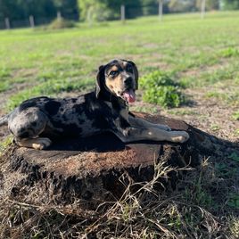 Atlas is a male Catahoula Leopard Dog. Carefully selected as a great representative of his breed, Amy decided to make him part of their program. Amy has passed Good Dog’s screening process, which involved a review of their breeding practices, environment, and the mental and physical health of their dogs.