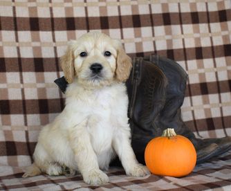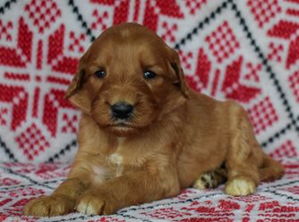 Teddy is a super sweet, easy going, happy, affectionate guy. He has a gorgeous blocky English style build and lovely teddy bear coat (thus the name teddy ;) He was born at our home to our golden retriever Ginger and poodle Indy. Teddy is OFA certified and DNA tested.