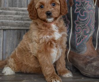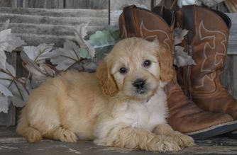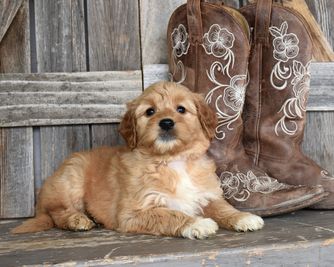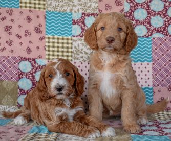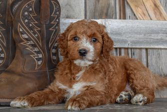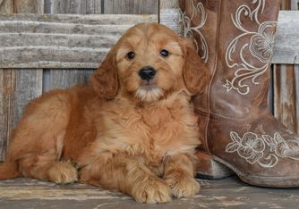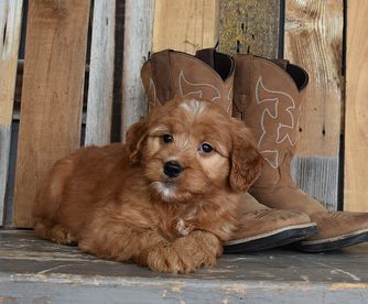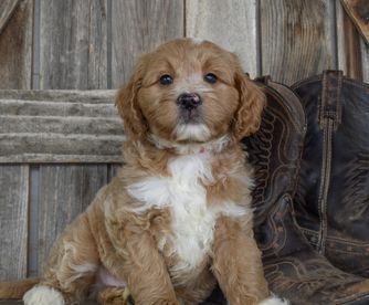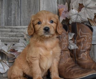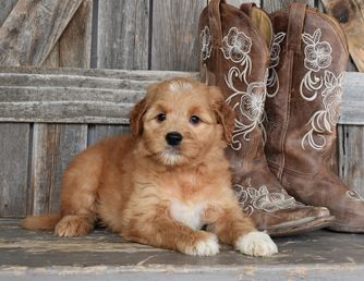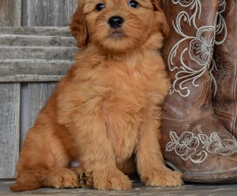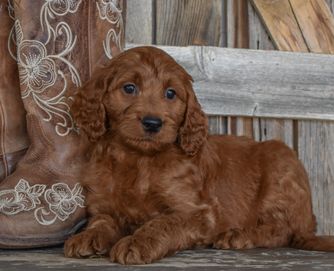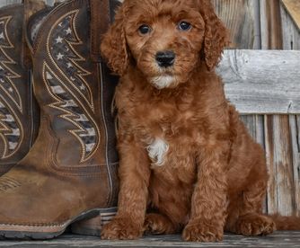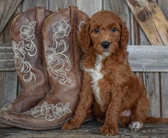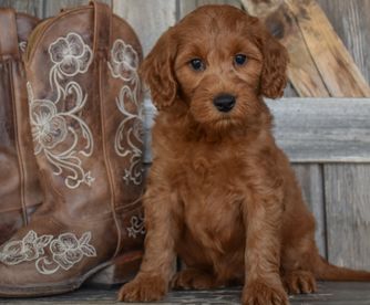 Our Irish Doodle puppies include apricot and red. Goldendoodle puppies include cream, apricot, red, chocolate, black, phantom, merle, and parti. Colors will vary depending on the parent dogs.